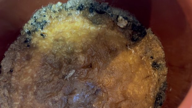 3ヶ月経ちました。様子を見たところ、ご覧の通り周りにカビが生えてました。ですが失敗したわけでもなく、味噌作りにはあるあるなようです。スプーンなどでカビを根こそぎ取り除けば全く問題ありません。